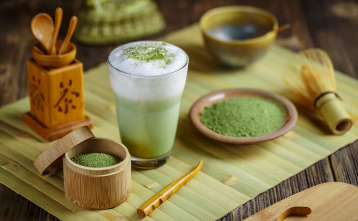 - 1 colher de chá cheia de matcha (chá verde em pó de boa qualidade)